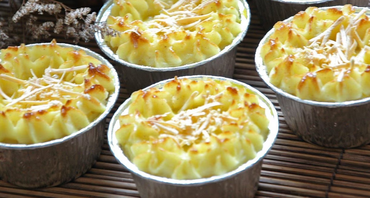 Pastel tutup kentang adalah hidangan gurih yang sering disebut sebagai versi lembut dari pastel goreng. Berbeda dengan pastel biasa yang digoreng hingga renyah, pastel tutup disajikan dengan cara dipanggang atau dikukus, sehingga teksturnya lebih lembut dan creamy. Lapisan kentang halus di bagian atas berpadu dengan isian daging cincang dan sayuran berbumbu membuat hidangan ini sangat cocok dijadikan takjil istimewa saat buka puasa.